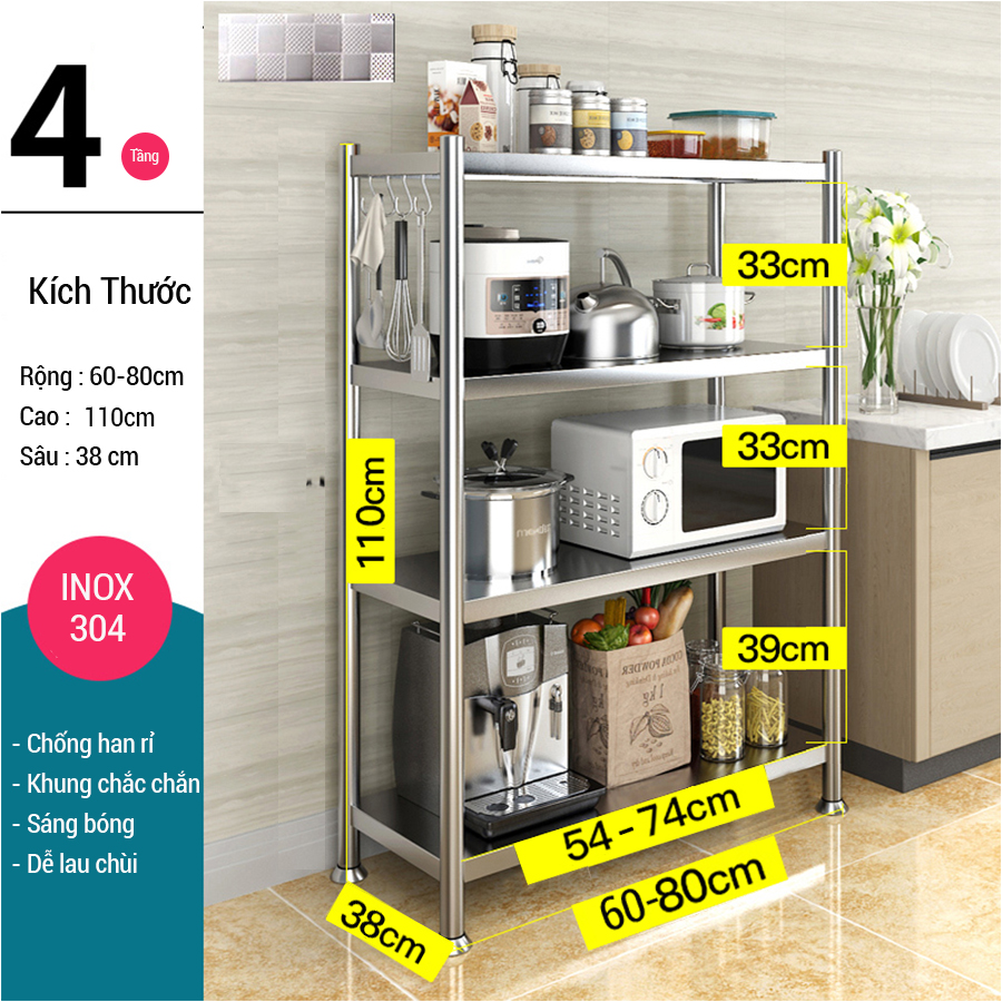 TÍNH NĂNG NỔI BẬT KỆ INOX NHÀ BẾP ĐỂ ĐỒ ĐA NĂNG 4 TẦNG THÔNG MINH KALPEN