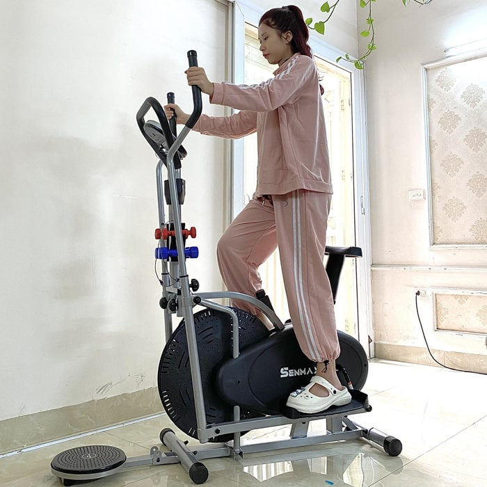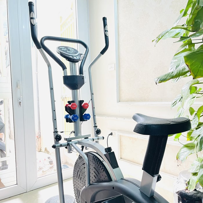 Tặng kèm đồng hồ, Tạ tay, bàn xoay, đo nhịp tim.