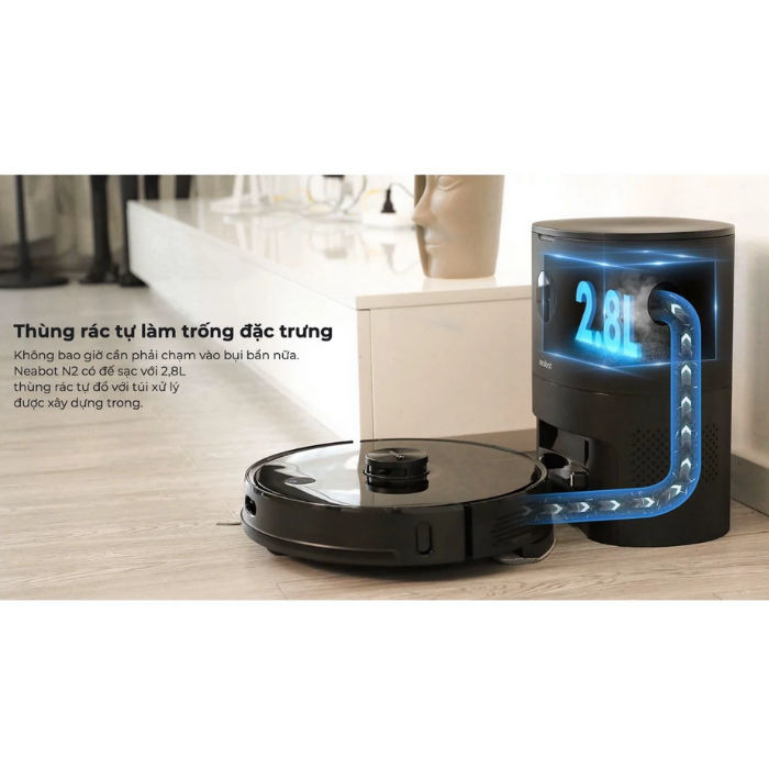 Nhờ công nghệ hút rác tự động và chứa rác bụi độc đáo của NEABOT N2 2021 bạn hoàn toàn yên tâm khi vắng nhà nhiều ngày bởi robot đã được lập trình ưu việt cho chu trình hút và đổ rác tự động lên đến 4 tuần. Giải phóng hoàn toàn khả năng vệ sinh hộp rác hàng ngày như các model thông thường. Cùng với đó là khả năng khử mùi, kháng khuẩn cũng được nhà sản xuất tích hợp trong trạm sạc thông minh.