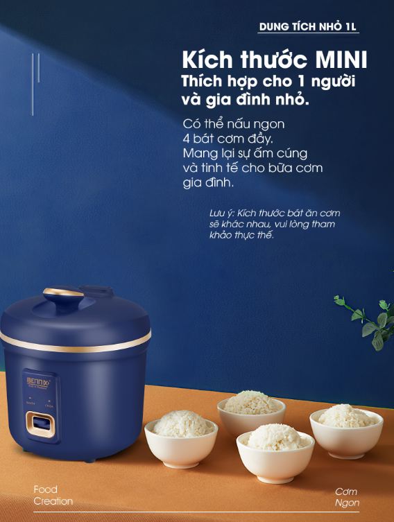NỒI CƠM ĐIỆN MINI DUNG TÍCH 1L BENNIX BN-010HC