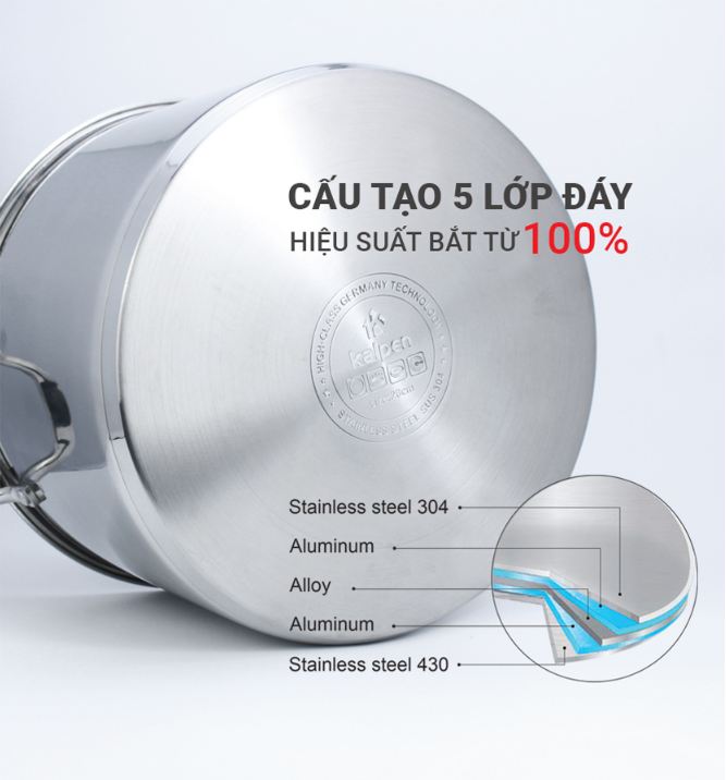 [Cấu tạo đáy 5 lớp] Sản phẩm được cấu tạo 5 lớp ở đáy, đảm bảo hiệu suất bắt từ cực nhanh (100%) cùng khả nẳng truyền nhiệt giữ nhiệt tốt giúp thực phẩm được chín đều. Qua đó cũng làm thời gian nấu nướng, luộc gà nhanh hơn cũng như tiết kiệm điện năng hơn đến 30%. Đáy từ 5 lớp của Kalpen được sản xuất và thiết kế theo dây truyền công nghệ chuẩn CHLB Đức, Kalpen bảo hành đáy từ lên đến 10 năm!!