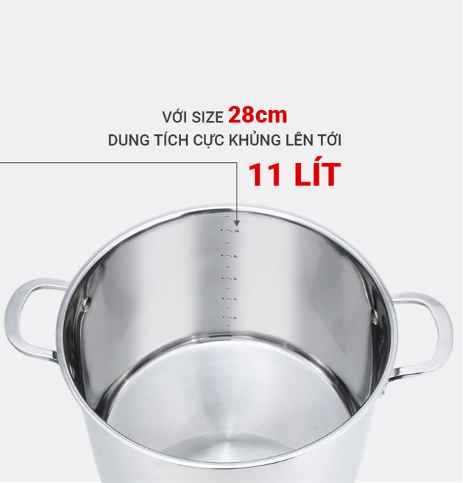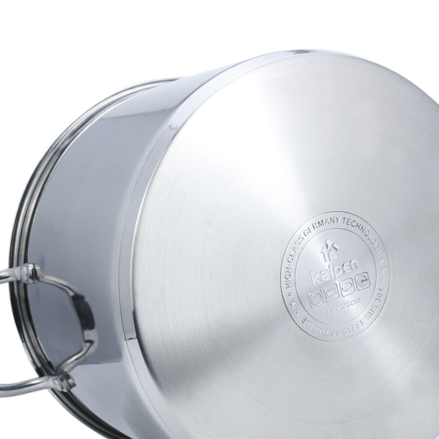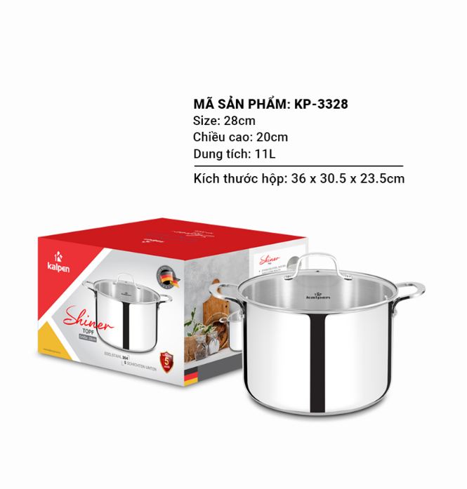 Nồi luộc gà inox 304 Kalpen có dung tích 11 lít và size 28cm.
