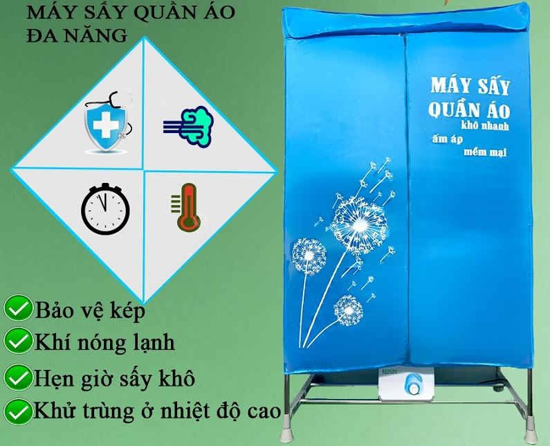 Có nhiều chế độ sấy tắt/bật, nhanh/chậm... ion hóa ,tự động sấy và cài đặt thời gian sẽ giúp cho chúng ta dễ dàng trong việc làm khô quần áo.
